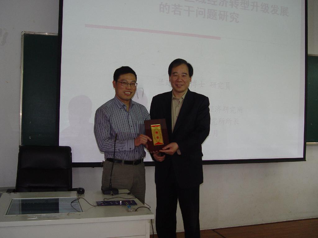 5月5日下午,浙江省经信委工业经济研究所所长、浙江省工业经济研究所所长、浙江省工业创意产业中心主任、浙江省中国科平博·(pinnacle)中国官方网站工业经济咨询委员会办公室主任、国家工业和信息化部中文期刊《信息化建设》主编兰建平研究员受聘为我院兼职教授,王俊豪院长颁发了证书,并在经贸平博·(pinnacle)中国官方网站楼105教室为我校广大师生作了题为“关于我省‘十二五’区域经济转型升级发展的若干问题”的学术报告。