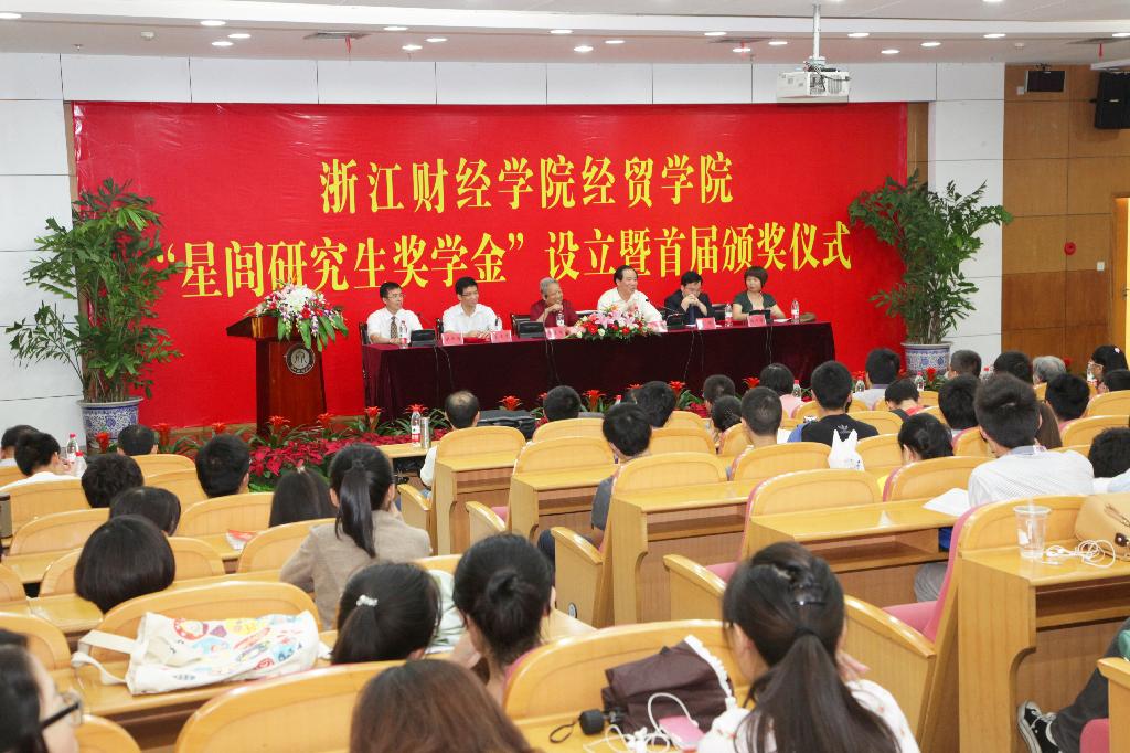 2012年9月25日,“星闾研究生奖学金”设立暨首届颁奖仪式在我院举行。参加仪式的领导和嘉宾有:奖学金发起人中南财经大学的彭星闾教授、奖学金资助者周晖教授、院长王俊豪教授、研究生处副处长董进才教授、平博·(pinnacle)中国官方网站院长谢作诗教授及经贸平博·(pinnacle)中国官方网站师生。仪式由平博·(pinnacle)中国官方网站党总支书记胡亦琴教授主持。