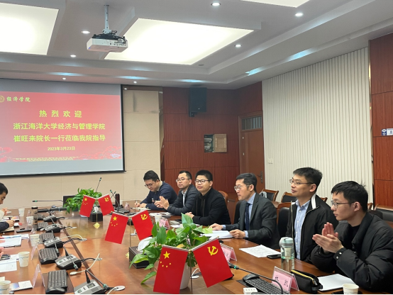2023年3月23日上午,浙江海洋大学经济与管理平博·(pinnacle)中国官方网站副院长崔旺来副院长一行6人来我院就数字经济专业教学与建设工作相关事宜进行调研。副院长邓晓军教授,数字经济系唐要家主任、丁松副主任、汪晓辉、匡韩斌、林凯等老师热情接待来访客人。