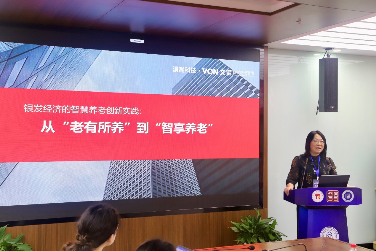 毛亚萍董事长作“银发经济的智慧养老创新实践:从‘老有所养’到‘智享养老’”报告。她对“传统养老模式”和“智慧养老模式”从核心要素到实现路径做出了全面比较,进而给出智慧养老的"数据+科技"解决方案,该方案包含三大核心架构并已在苏峰村试点实践中取得显著成效,同时探索出数据资产化与产业延伸的创新路径。