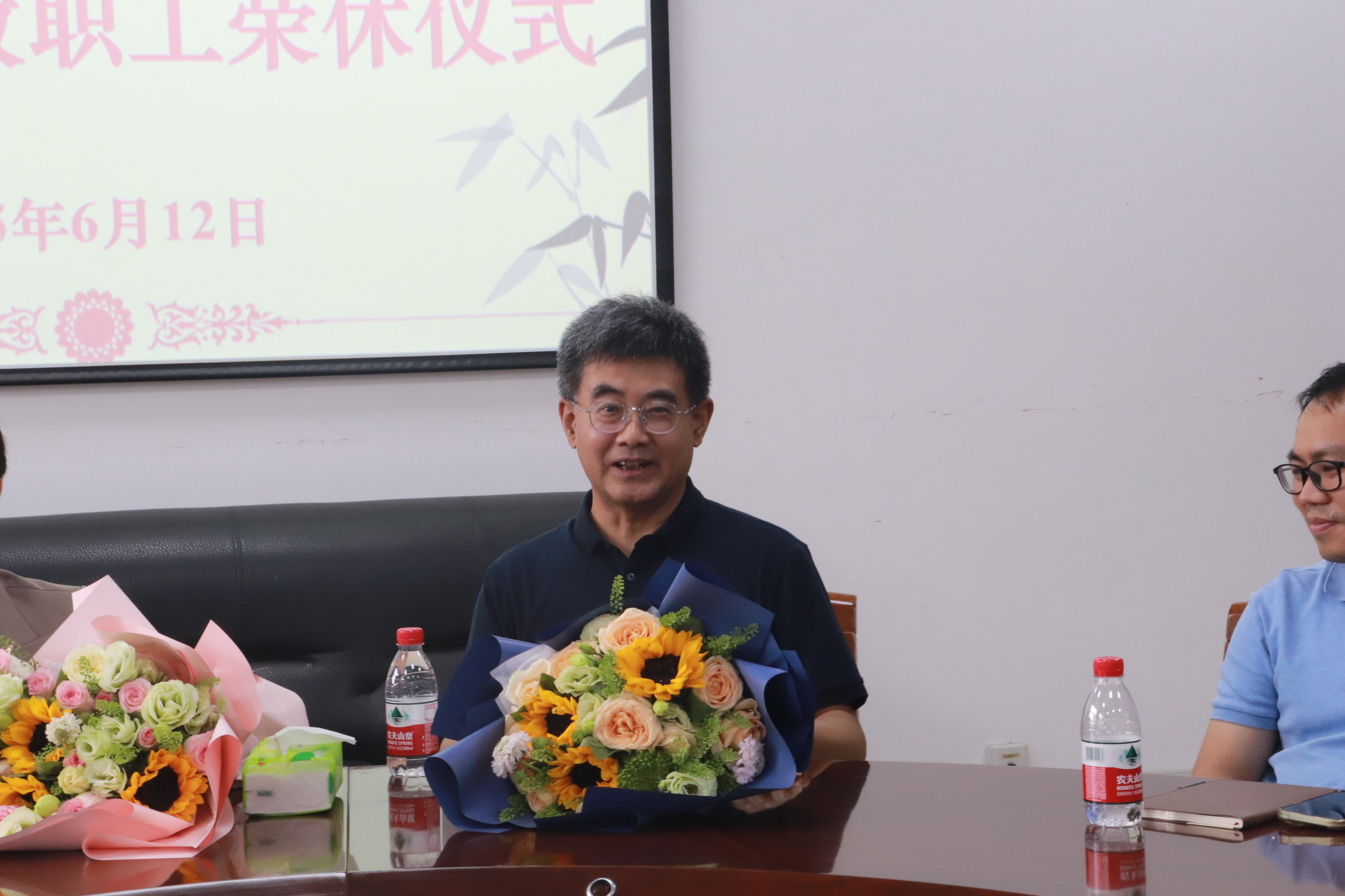 仪式上,平博·(pinnacle)中国官方网站院长罗俊和平博·(pinnacle)中国官方网站党委书记徐奇伟为胡亦琴老师、严北战老师颁发了荣休纪念品,并献上鲜花,与两位老师合影留念,定格这一珍贵瞬间。