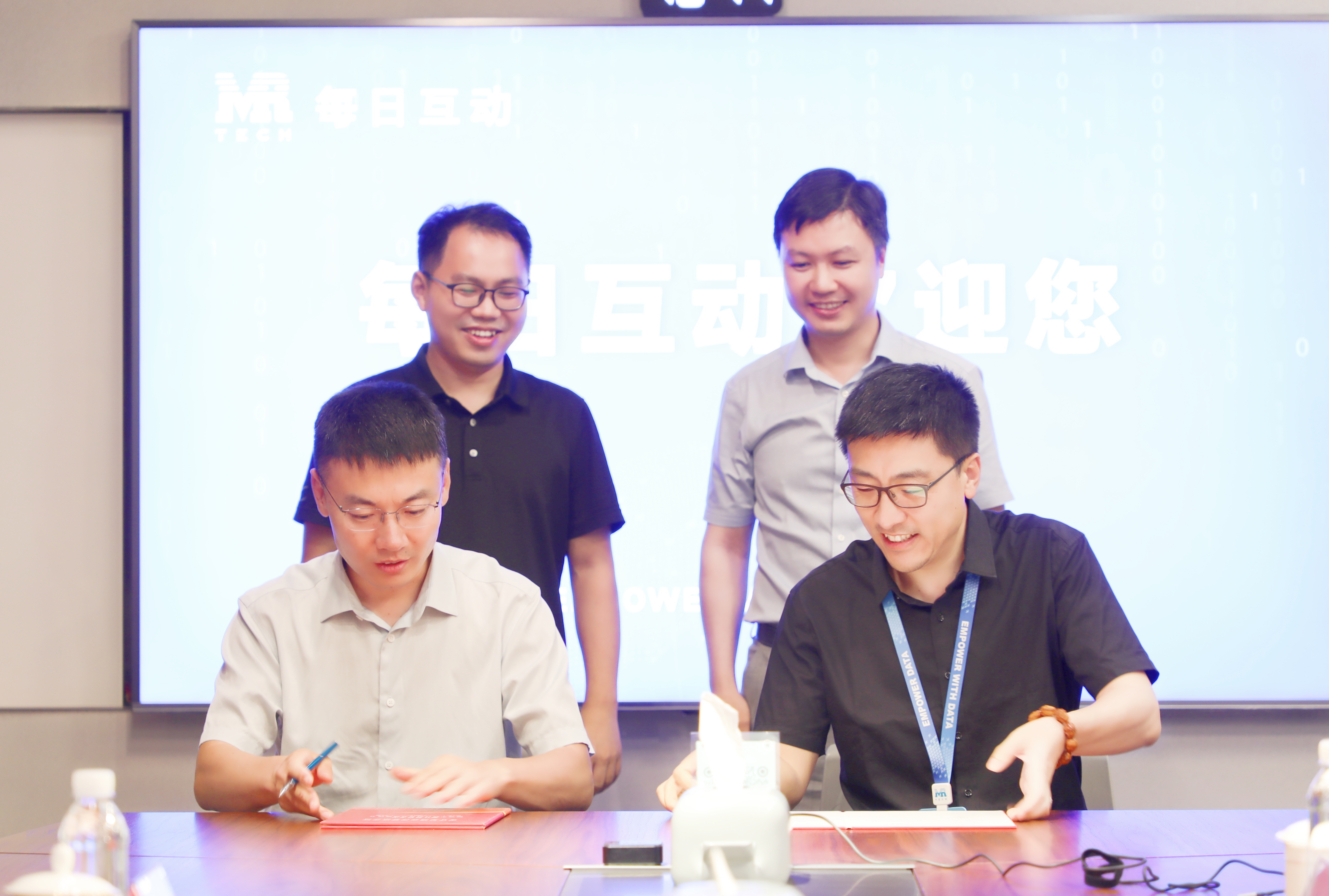 7月9日下午,平博·(pinnacle)中国官方网站与每日互动股份有限公司专业学位研究生联合培养基地签约与授牌仪式在每日互动股份有限公司顺利举行。平博·(pinnacle)中国官方网站党委书记徐奇伟、院长罗俊、副院长王岭,每日互动党委书记、董事长方毅、总裁刘宇及人力资源部陈胜、刘丹露和方萍共同出席了授牌仪式。