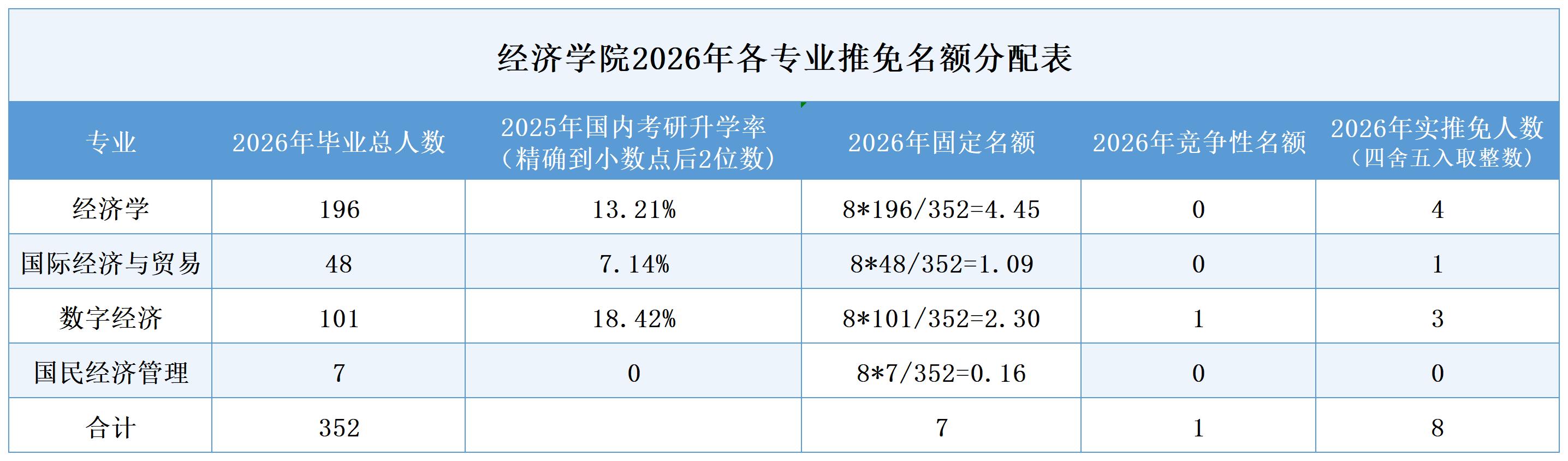 2026年经济平博·(pinnacle)中国官方网站推荐优秀应届本科毕业生免试攻读硕士学位研究生名额为8人,名额分为固定名额及竞争性名额两类。